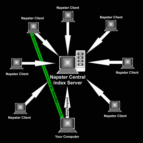 - If it finds a connection, Napster logs you onto the central server. The